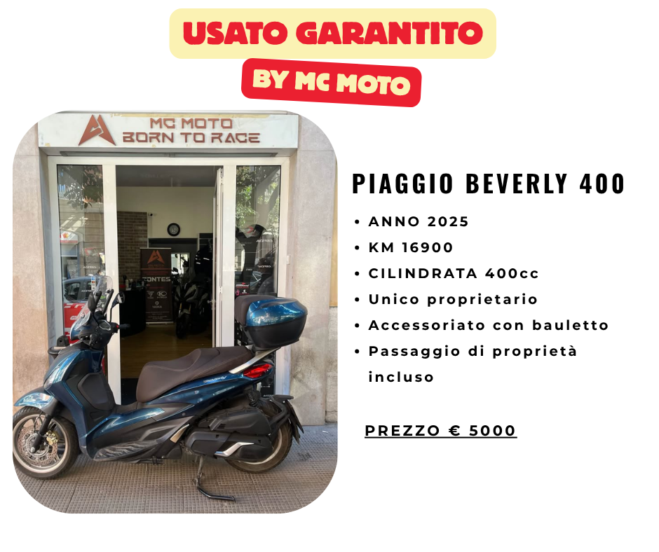 M.C Moto a Bari è un punto di riferimento per gli appassionati delle due ruote: non solo proponiamo la vendita di moto nuove, ma per chi è alle prime armi, saremo in grado di proporre anche la vendita di moto usate chiaramente revisionate, in ottime condizioni e a km 0 per garantirti qualità e garanzia.